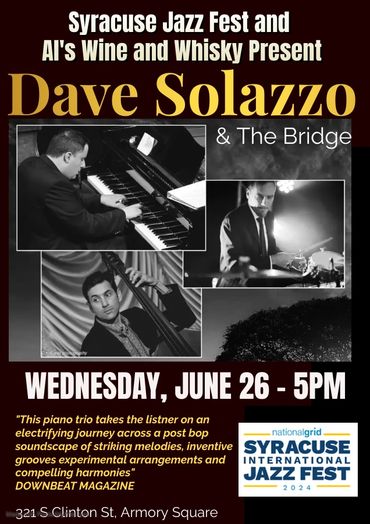 Dave Solazzo has been a staple of Central New York's music scene for over two decades. Much in demand as a soloist and sideman, Dave has worked with artists from a wide mix of genres - jazz, fusion, R&B and beyond. He has performed and recorded with jazz luminaries like Eric Alexander, Chuck Mangione, Larry Coryell, Joel Frahm, Dick Oatts, Jerry Weldon and Joe Magnarelli at venues like The Flatiron Room (NYC), Troy Music Hall, the Savannah Jazz Festival and the Syracuse Jazz Fest.